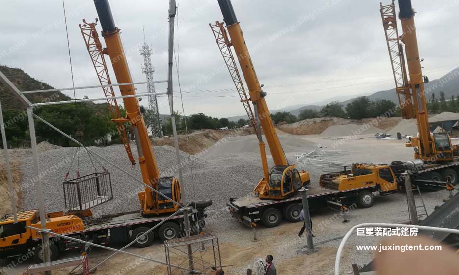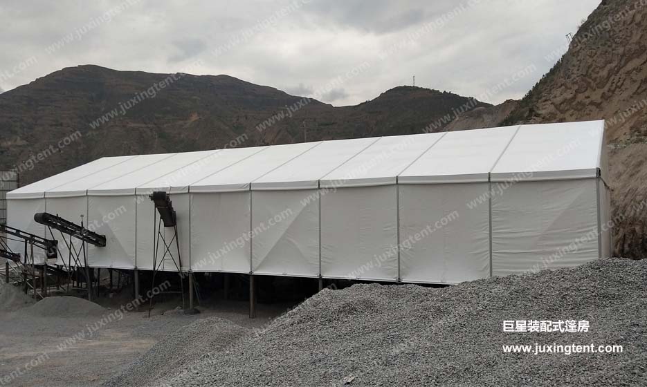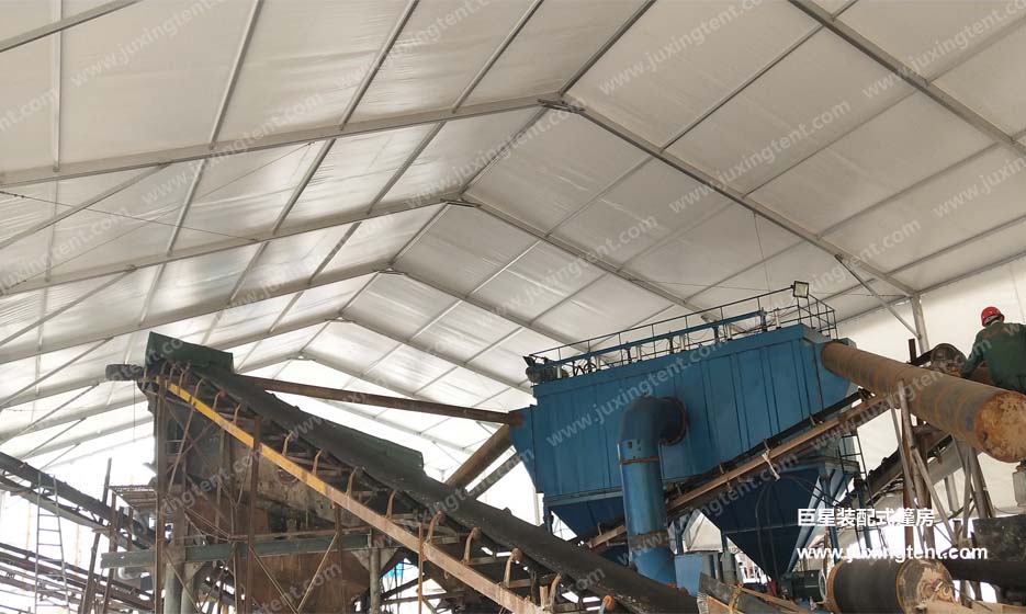 后來老板介紹道:“這是江蘇一家工廠研發(fā)出一種裝配式的廠房,跨度可達(dá)80米、長度無限延伸、高度10多米,能抗風(fēng)載雪,材料也是高度符合環(huán)保要求。 如果不蓋棚子,這個(gè)灰到處飄,二十米內(nèi)全都是灰,路上草上樹上地上,到處都是。長年累月積累下來的灰,相當(dāng)驚人的。這樣做就把大部分灰留在了廠區(qū),不至于飄灑的哪里都是。像我做這個(gè)石料行業(yè)的,開采地點(diǎn)會(huì)時(shí)常變更,堆積物料的卸貨點(diǎn)也會(huì)變更,這就要一個(gè)遮蔽物隨著工作地點(diǎn)的變化而變化。而我現(xiàn)在使用的這種裝配式篷房就能輕松實(shí)現(xiàn),裝配式篷房就可以隨意搭拆,如果框架加上輪轂就可以實(shí)現(xiàn)篷房哪里需要哪里“走”。而且咱們也要積極樹立綠色治理理念,轉(zhuǎn)變思維,創(chuàng)新發(fā)展,為進(jìn)一步提升全市的生態(tài)環(huán)境治理和空氣質(zhì)量提升做出更大貢獻(xiàn)。”看來這位老板不僅會(huì)做生意,也非常有“覺悟”的!