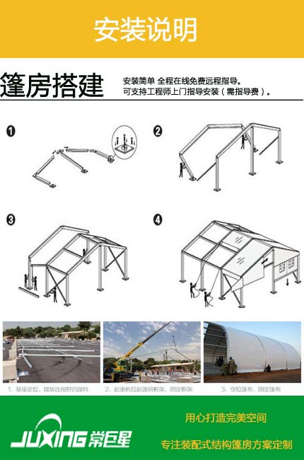 常巨星裝配式篷房公司是一家篷房研發(fā)、生產(chǎn)、銷(xiāo)售、租賃于一體的綜合性篷房公司。巨星公司秉著誠(chéng)信經(jīng)營(yíng)、客戶(hù)至上的經(jīng)驗(yàn)理念服務(wù)客戶(hù)。很多人覺(jué)得戶(hù)外婚禮是明星或貴族才可以舉辦的,其實(shí)不然,婚禮帳篷的出現(xiàn)為很多新人的婚禮提供了更多的可能性。戶(hù)外婚禮篷房相比傳統(tǒng)酒店來(lái)說(shuō),不僅可以快速投入使用,且可以節(jié)約經(jīng)濟(jì)開(kāi)銷(xiāo)。